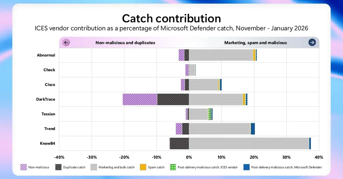 Microsoft released new benchmark data on email security performance, showing Microsoft Defender removes 70.8% of malicious emails post-delivery and highlighting the benefits of layered protection with ICES solutions. This transparency helps security teams make informed decisions about detection coverage and integrated multi-vendor protection strategies.