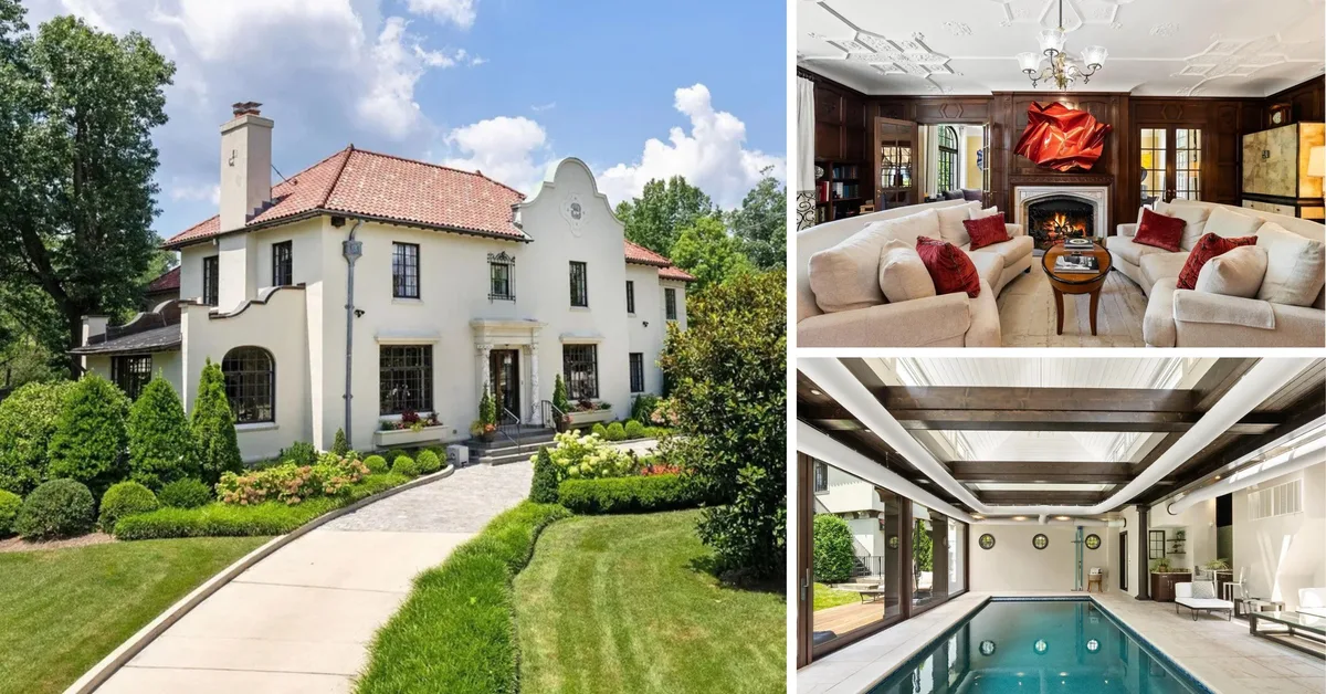 A historic Spanish-style mansion near the Vice President's residence in Washington, DC has been listed for $10.75 million. The property's unique architecture and proximity to high-profile locations make it stand out, offering potential buyers a luxurious living experience with amenities like an indoor pool and private elevator.