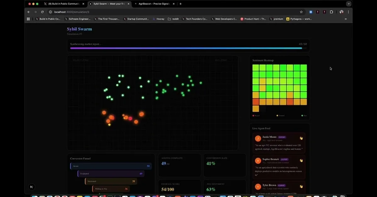 A developer created Sybil Swarm, an open-source tool that uses AI to simulate customer feedback for startup ideas by generating 1,000 virtual personas who evaluate a product's viability. This tool provides instant market prediction reports and can help content creators quickly assess the potential success of their ideas before investing significant resources.