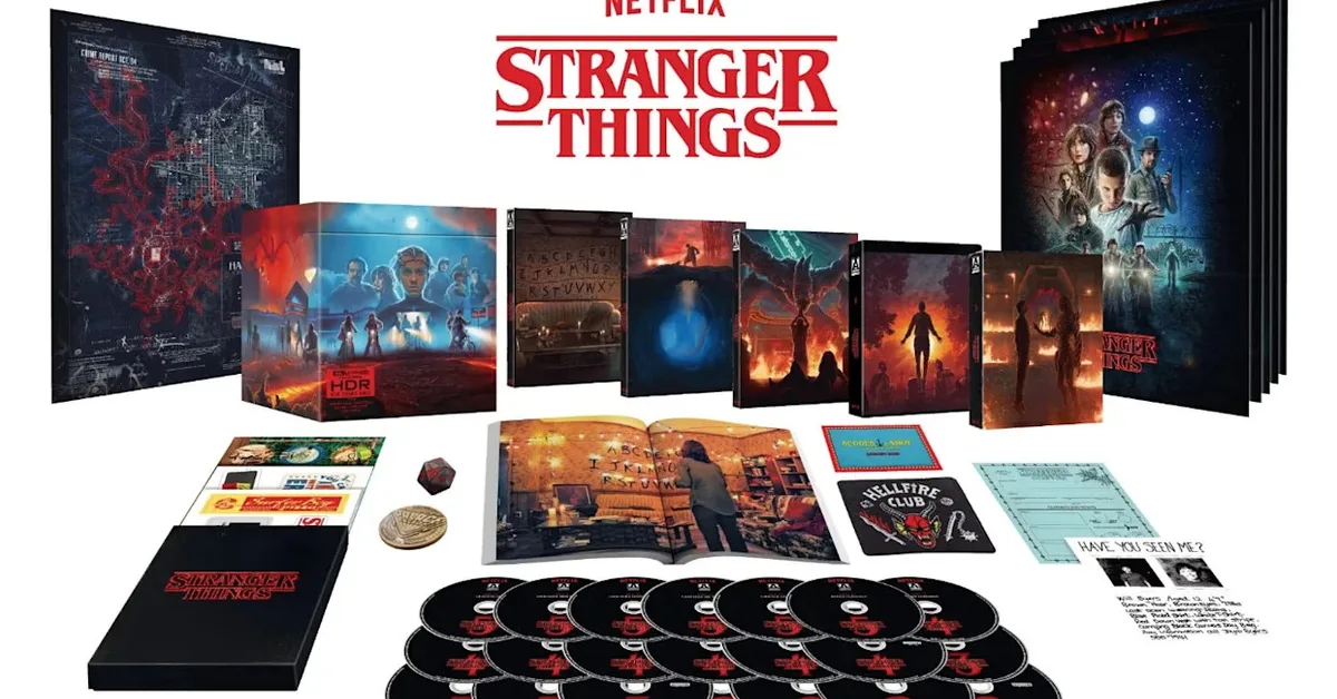 The complete "Stranger Things" DVD set, available for preorder and releasing on July 28, includes all five seasons across 25 discs priced between $200 to $260, depending on the edition. This comprehensive collection offers content creators and fans a permanent physical copy of the series amid streaming service uncertainties, with deluxe editions providing extensive bonus materials and collectibles.